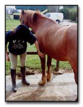 Встав слева от лошади, лицом к ней, осмотрите холку, спину, левый бок и грудь — особенно места прилегания к телу животного различных частей седла.
