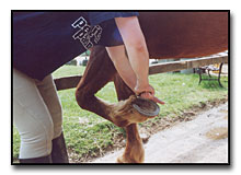 Для осмотра правого бока обойдите лошадь со стороны головы, придерживая правой рукой повод. Проверка готовности лошади к езде заканчивается осмотром и чисткой копыт.
