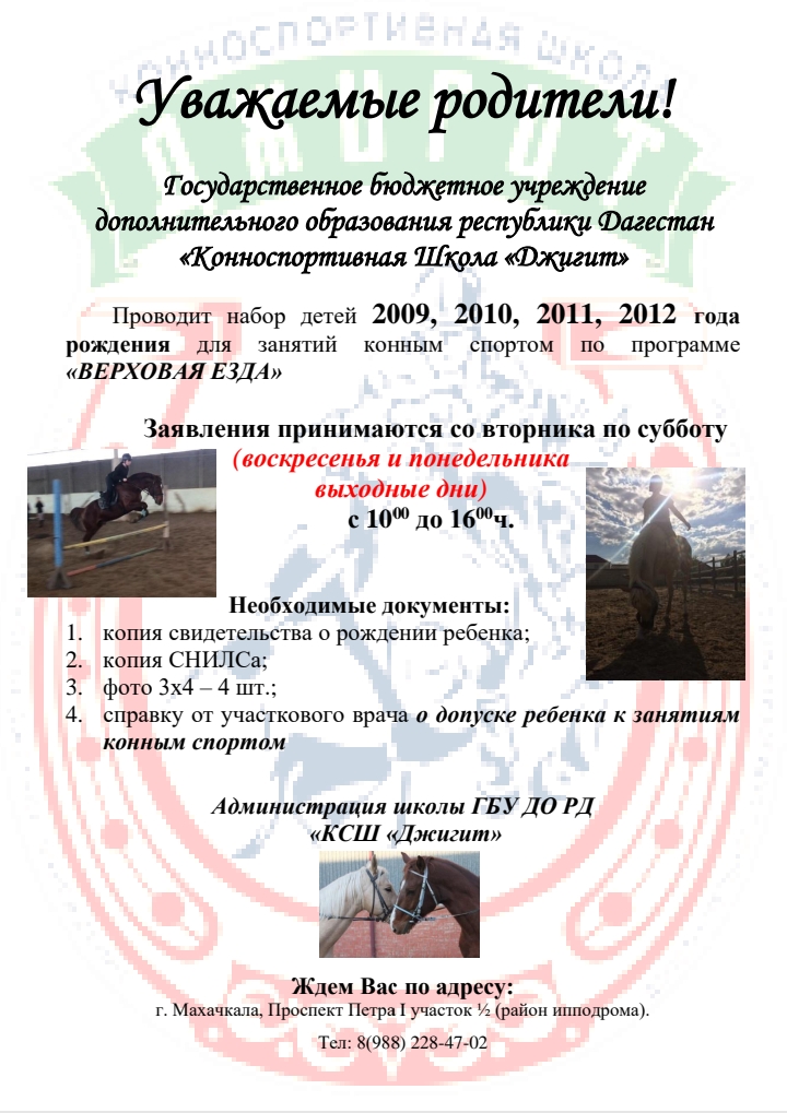Постановление Правительства РД «О создании ГБУ ДО РД «КСШ «Джигит»